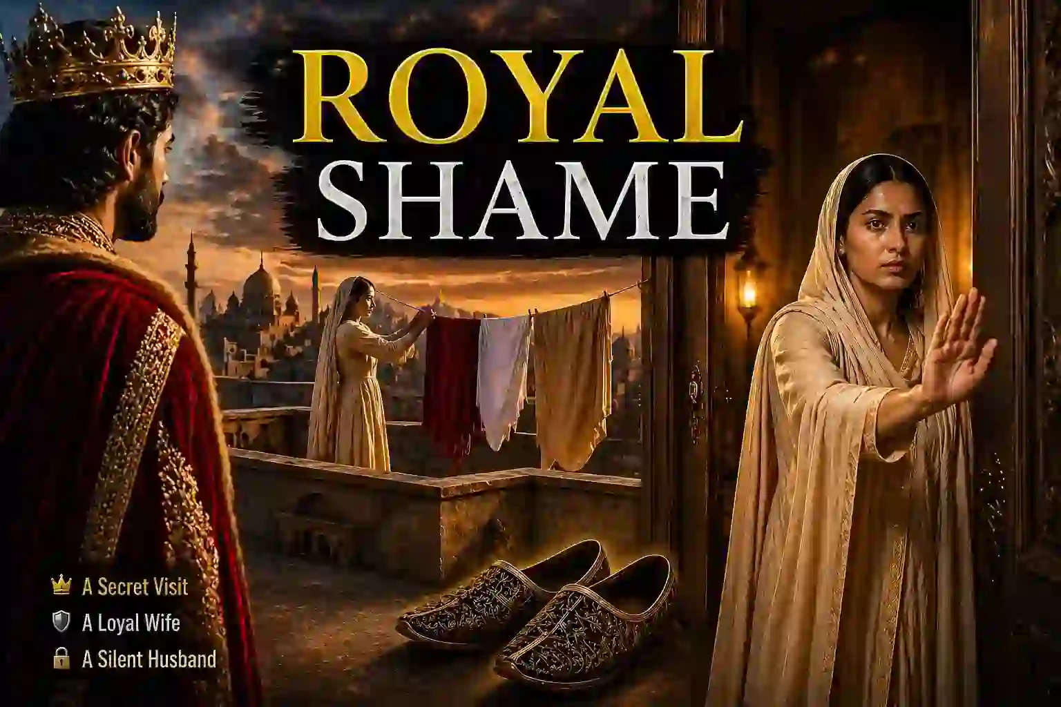 On the roof of a nearby house, a woman was standing, hanging freshly washed clothes to dry. She was simple in her appearance, yet her beauty was striking. There was a natural grace in the way she moved, a quiet dignity in her presence. The king stopped in his tracks, unable to look away. For a few moments, he forgot everything else.